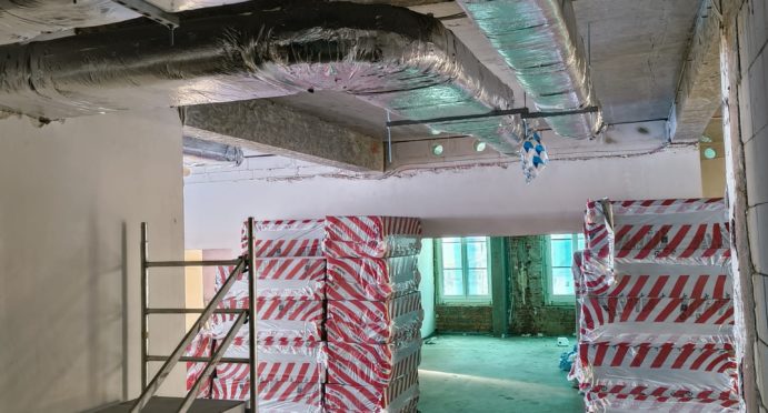 Wszystkie prace prowadzone są zgodnie z harmonogramem i przy zachowaniu zasad bezpieczeństwa. Projekt ma na celu poprawę efektywności energetycznej budynku użyteczności publicznej (historycznego wybudowanego przed 1890r.), położonego w Olsztynie przy ulicy Partyzantów 82, działka nr 65/1 i 65/2, obręb 0072.