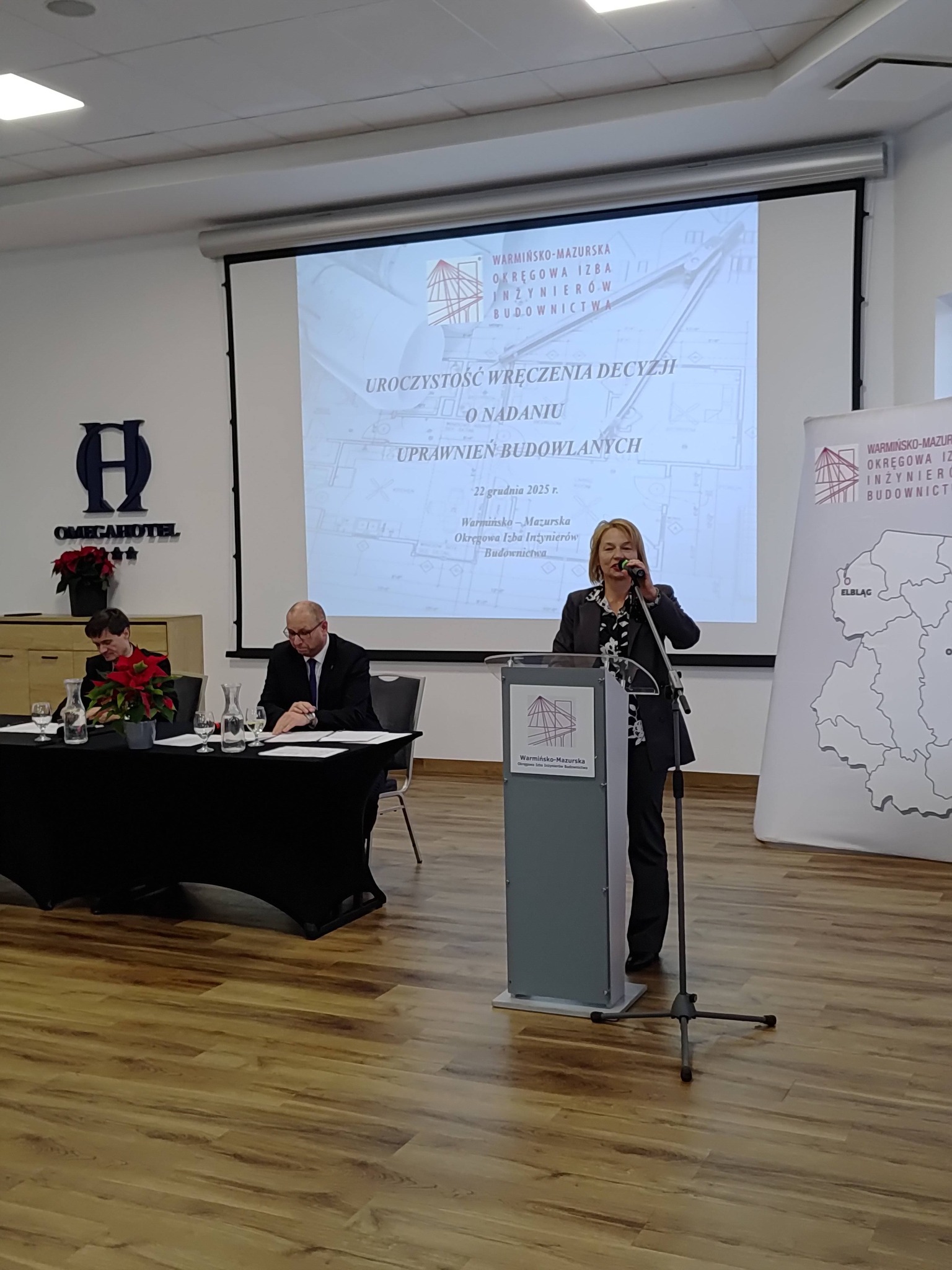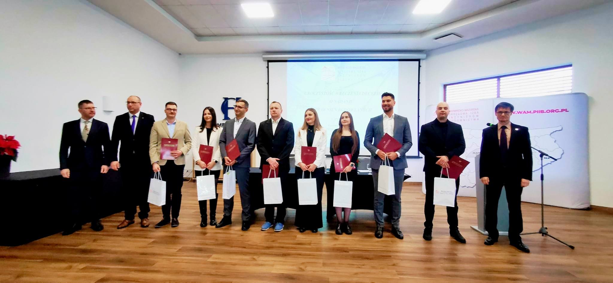 Uroczystość odbyła się 22.12.2025 r. w Hotelu OMEGA w Olsztynie. Otworzył ją Przewodniczący Rady W-MOIIB Jarosław Kukliński wraz z Przewodniczącym Okręgowej Komisji Kwalifikacyjnej W-MOIIB Jackiem Zabielskim.