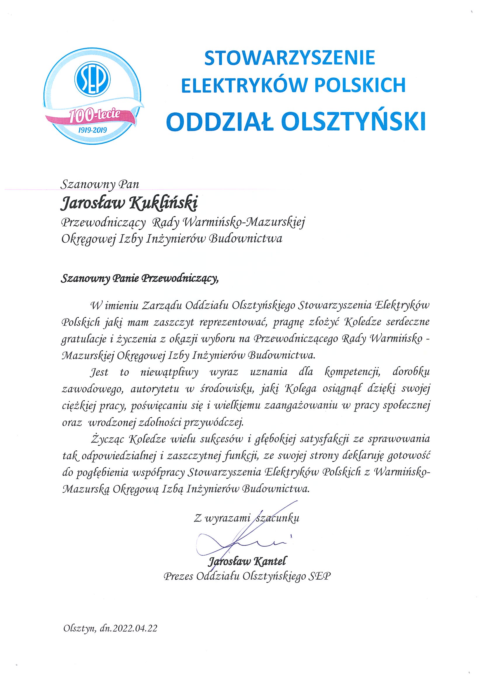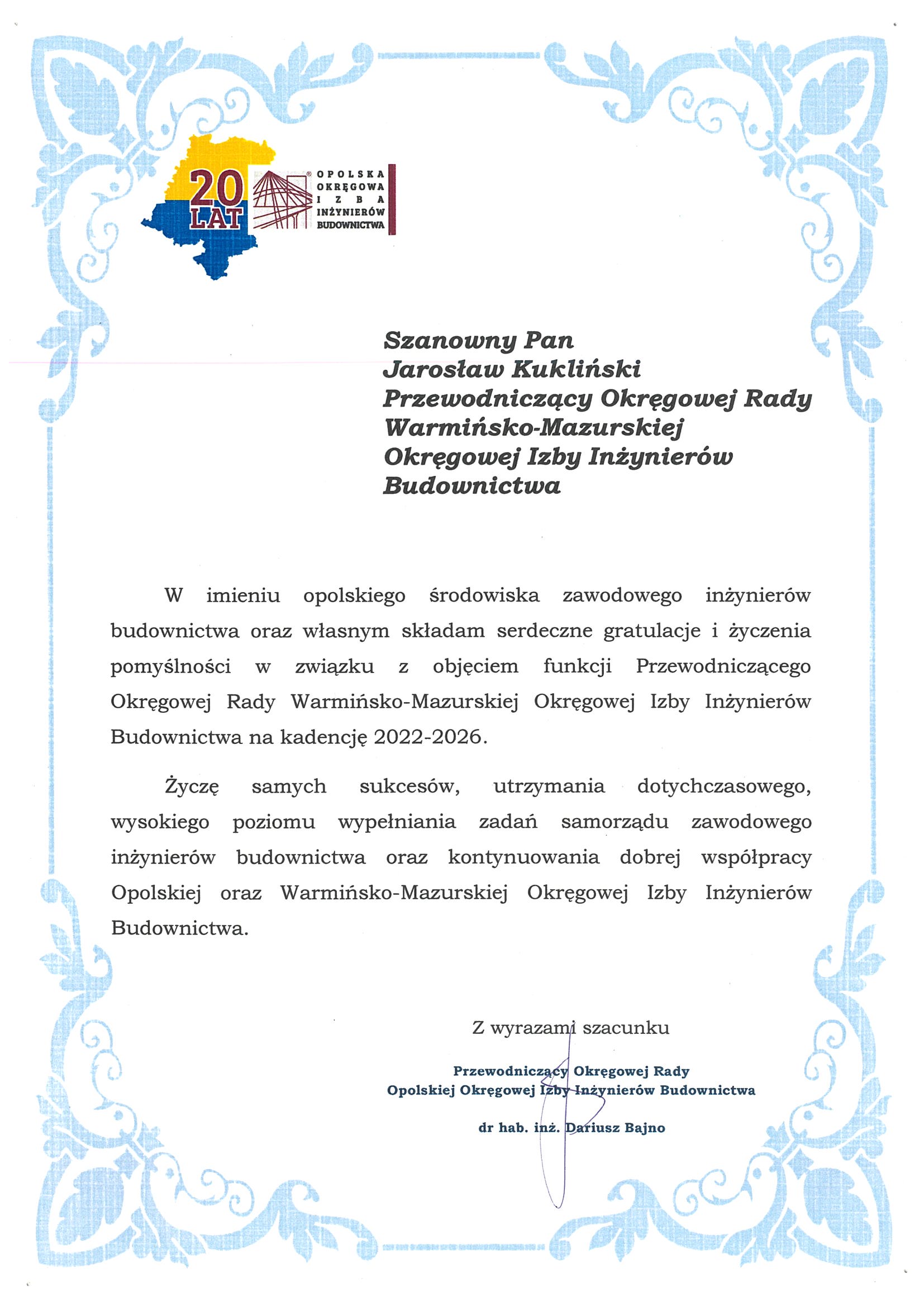 Listy gratulacyjne
