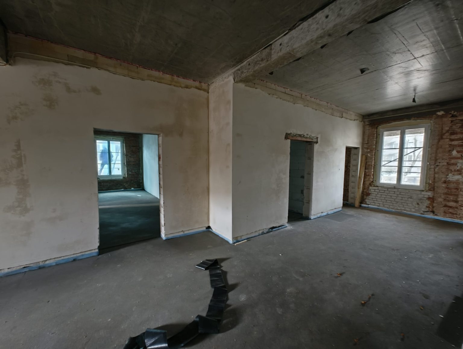 Po wykonaniu prac instalacji elektrycznej oraz sanitarnej ogrzewania podłogowego i wody wykonano szlichty wraz z izolacjami na dwóch kondygnacjach,